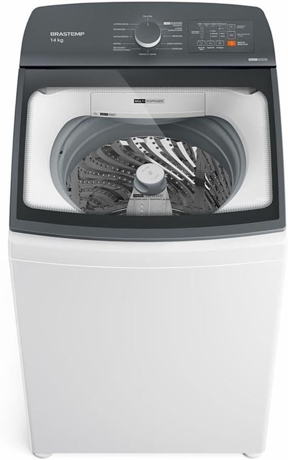 - Por que vale? Uma das marcas mais confiáveis no Brasil, com capacidade de 14kg, painel digital e programas completos.